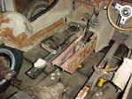 The bigger of the two major rebuilds took place in 2000. Several years of unsuccessful trialling with the 2-litre Triumph "Six" upfront culminated in a poor showing in the Lands End Trial that year when a rear axle rebuild loomed. Rather than just rebuild as was, I decided on more radical surgery. I had a reasonable Rover V8 and gearbox from my old P6, and cast around for a viable (ideally bombproof) rear axle. In the end, I settled on the Toyota Hilux axle and its sixteen-inch wheels as a basis for what still wouldn't be an out-and-out trials special, but would have more of the style and feel of one of the big V8 trials cars of the post-war era - rather like an Allard. Click any of the thumbnail pictures to see a bigger version